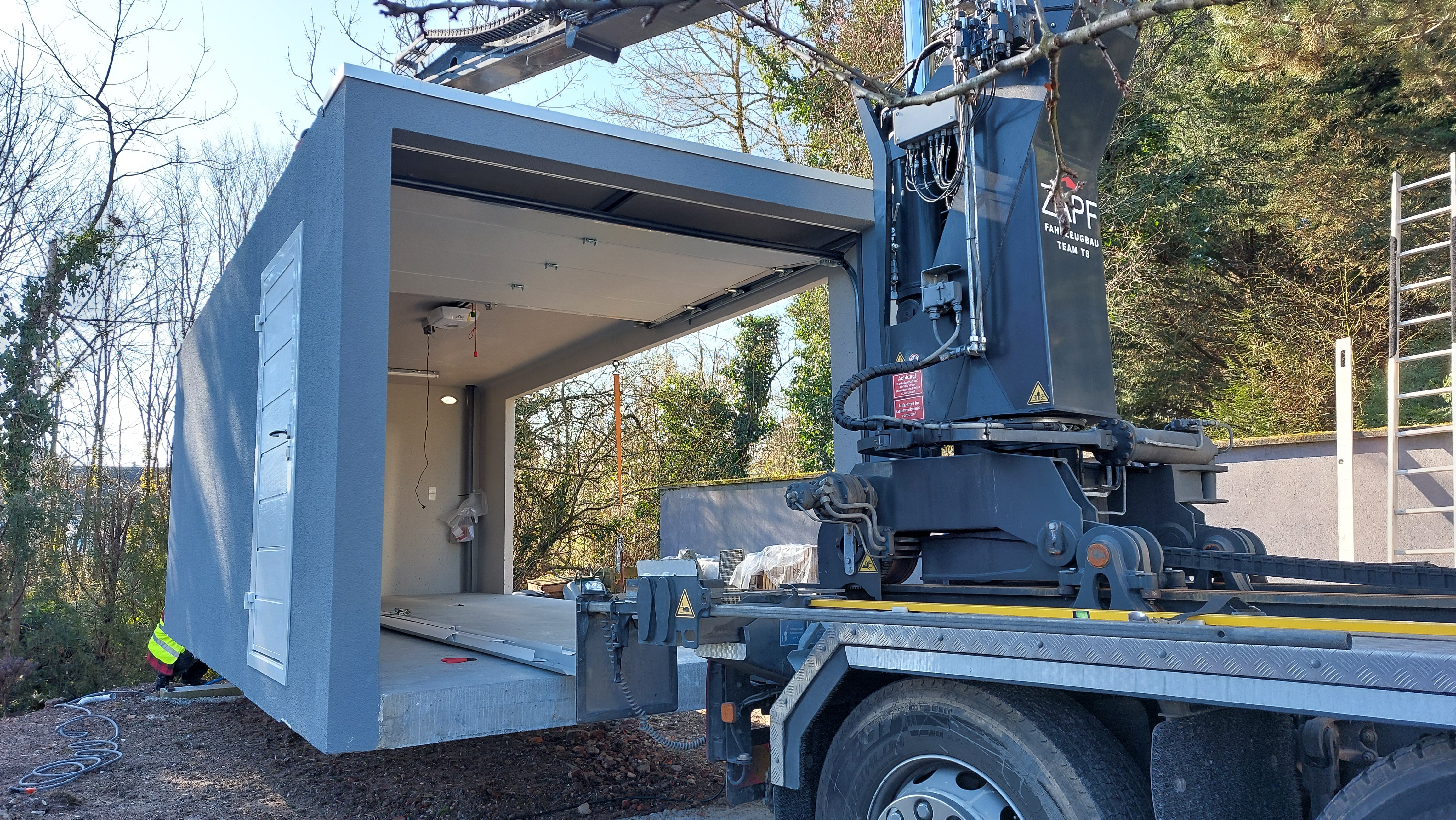 Installation et mise en service d'un garage fabriqué en usine et livré complètement fini. Zapf est une entreprise très professionnelle avec une excellente prestation. A recommander.